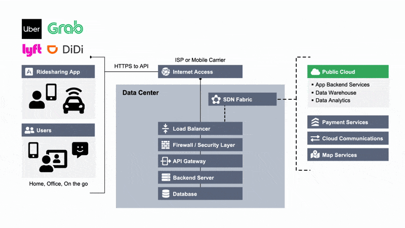 Data centers host the compute, storage and networking infrastructure rideshare companies use to run their apps, store data and connect with customers, drivers and service providers. The APIs they use require multiple types of networking available in data centers to connect software applications that work together to deliver the best possible user experience. Data centers are also where participants in a rideshare ecosystem can discover new partners with whom they can innovate.
