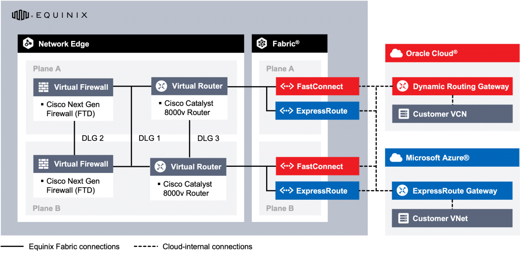 Figure 3: Multicloud connectivity with Equinix Network Edge and Equinix Fabric